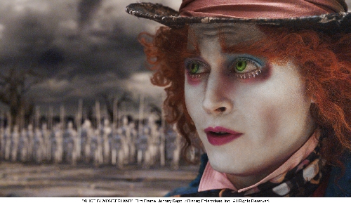 He may be mad as a hatter, but he knows the real Alice when he sees her -- and manages to get his head together enough to get Alice to the court of the strident, swell-headed Red Queen (Helena Bonham Carter), whose favorite phrase is "Off with his head!" (Or her head, the queen being an equal-opportunity despot.)