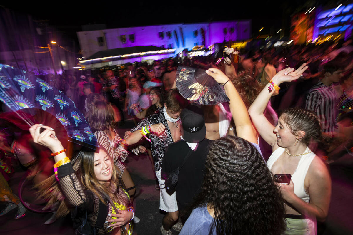 At 6 p.m., the dance floor was already full in the Western Country Club, where staffers from Stoney’s Rockin’ Country taught festivalgoers how to do country line dances such as “The Wolf” amid neon cacti and bales of hay. If busting moves in cowboy boots wasn’t your thing, you could learn to salsa up the street at the Casa Bacardi Latin dance party at the Place on 7th.