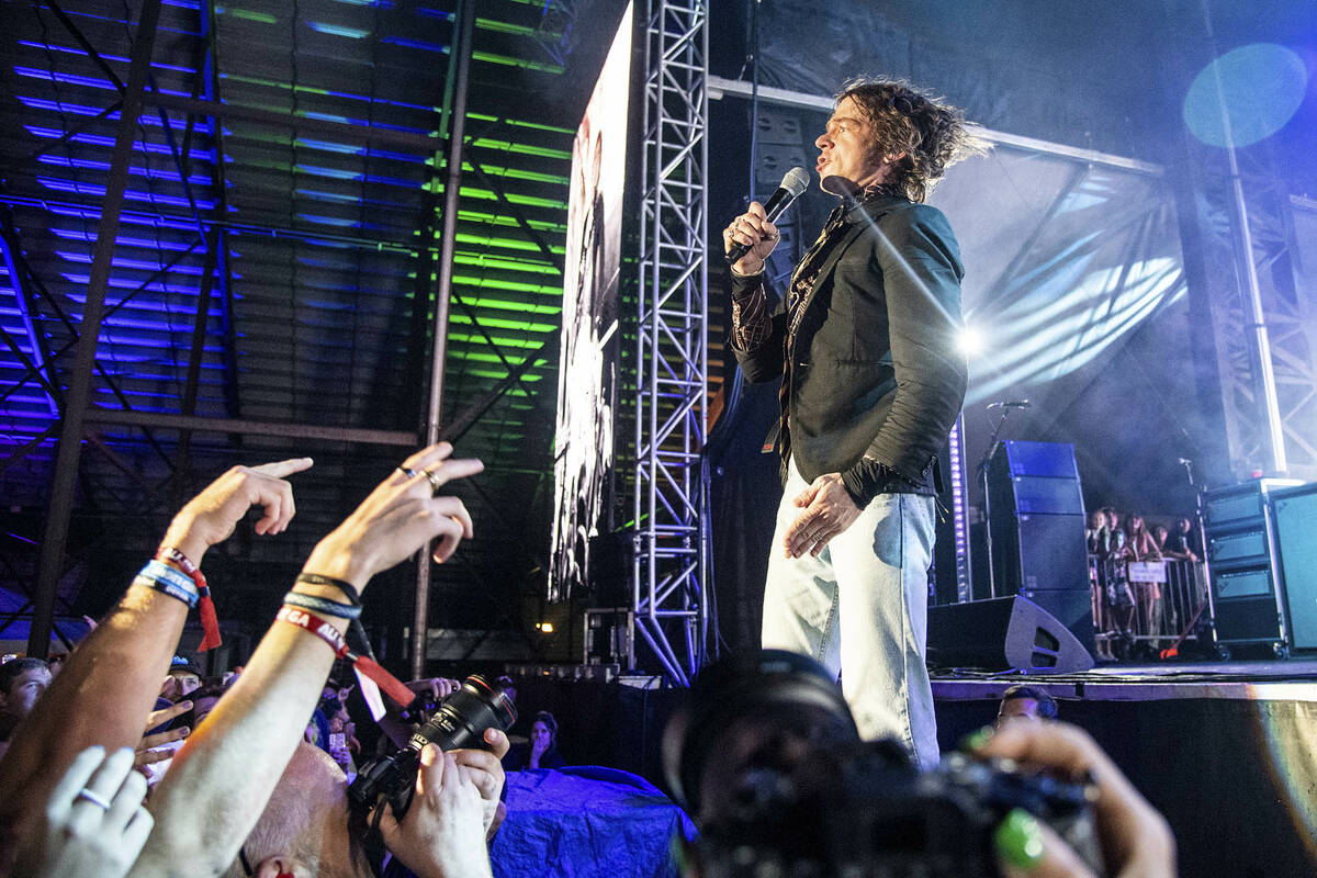 “I fell down to Earth/From a hundred miles away,” he sang on “Alien Boy,” though actually, Tree was born in Vegas, a city where kitsch can be king if done right — and Tree vied hard for that crown, from his numerous costume changes to having a stagehand come out and brush his sweet blonde mullet.