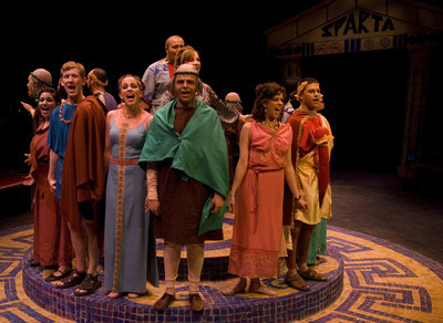 As Uncle Sam's ensnared in Iraq, it's theater's default political protest, cast as a pro-fem fun ride: Oliver Stone meets Hillary Clinton meets "American Pie," but with ancient Grecian Tara Reids.