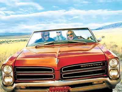 Instead, in the first of many contrivances, they hit the road in "Bonneville's" title vehicle, a cherry-red 1966 Pontiac convertible that will transport them to Santa Barbara -- with more than a few stops in between, from Utah's Bonneville Salt Flats to Las Vegas' glittery Strip. (West Wendover, just across the Utah border, provides the casino interiors.)