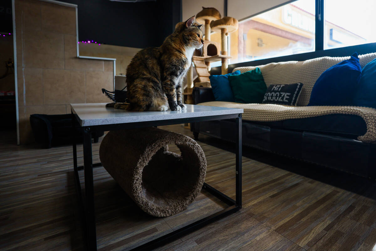 The advantage to the cat café model is that potential adopters can see more of the cat’s personality before they adopt, said Huysentruyt.