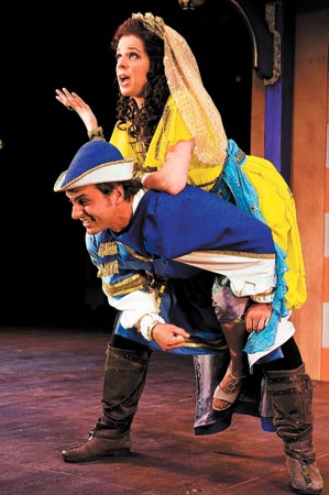 Things start out promisingly in director Kirk Boyd's mounting. The set, by Troy Hemmerling, suggests a candy-cane happy world full of Road Runner adventures. Tim Dial's costumes are a parade of giddy color. You're immediately put in the mood for knockabout farce.