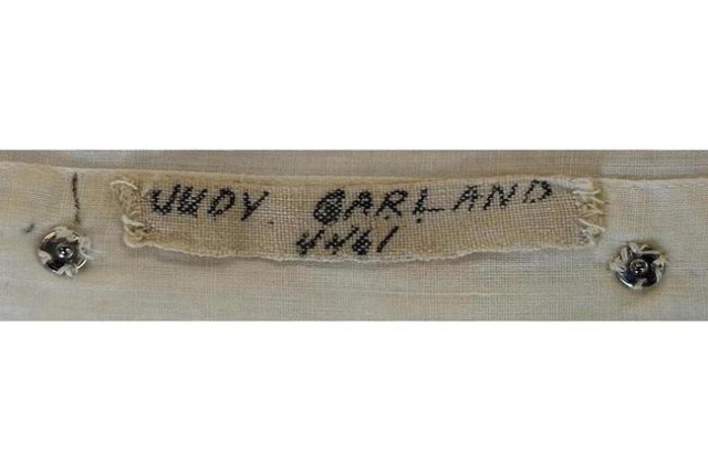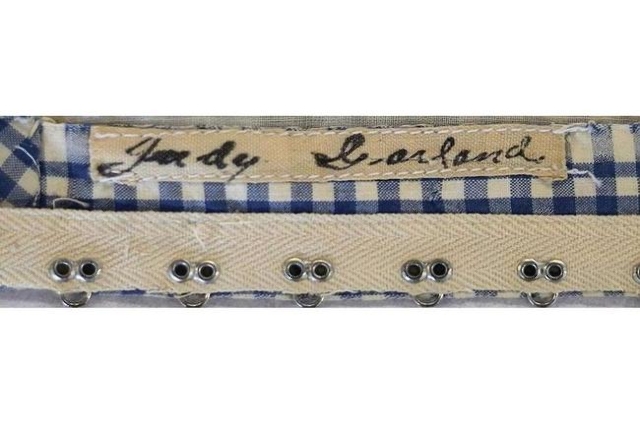 The costume consisted of the blue and white gingham pinafore with a fitted bodice and a full skirt with 'Judy Garland' inscribed on the inside as well as a short cream-colored cotton blouse with a high neck that also has "Judy Garland" inscribed inside, according to Bonhams website, the auction house who sold the costume.