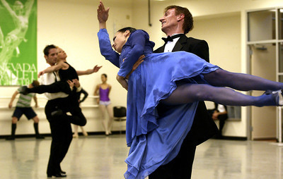 As befits the dean of doo-be-doo-be-doo, ballroom-style ballet is the motif, the ladies draped in Oscar de la Renta-style gowns, with seven couples sweeping across the stage beneath a sparkling glass ball in the first Tharp piece presented by Nevada Ballet Theatre.