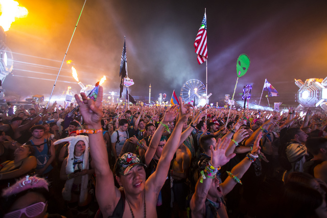 At Electric Daisy Carnival, there’s the typical rave attire — plastic kandi beads, rhinestone-encrusted bras, neon spandex and totems, the decorated poles often seen pumping up and down in the crowd. As throngs of people flow through the Cosmic Meadow down Electric Avenue, another accessory appears again and again: flags. Italian, French, Indian, Australian and of course, American.