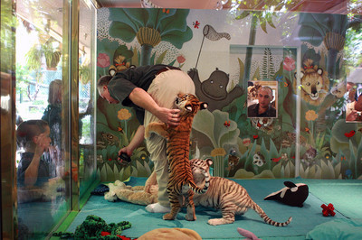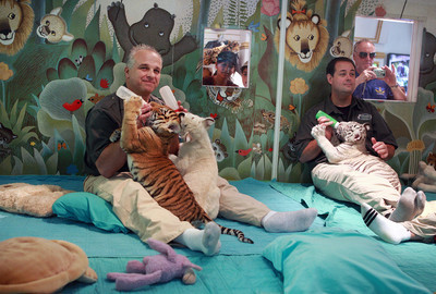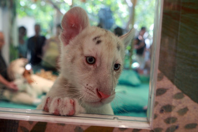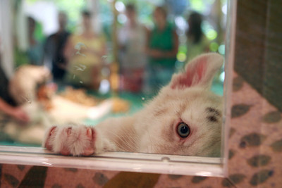 Tiger cubs are popular attractions; since arriving, the cubs -- two white, two snow white (without stripes) and one orange -- drew large crowds to their nursery, in a section of the Secret Garden gift shop. People gathered around the enclosure, straining their necks and braving 110 degree temperatures to watch the cubs frolic with stuffed animals and trainers. They have since grown out of the nursery and are now in the garden habitat.