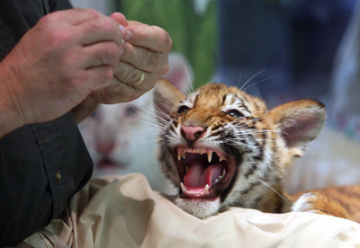 The breeding program is an important educational tool, Hitzhusen says, because wild tigers are on the brink of extinction. About 5,000 remain in the wild, while tens of thousands of tigers live in captivity in the United States alone.