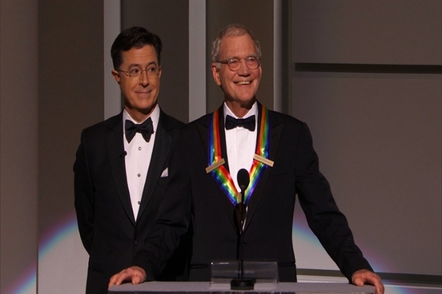 "Is there a party or anything? I brought a lot of people from CBS," quipped Colbert to Stewart.