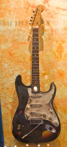 Another can't miss at the Paradise Road Hard Rock Cafe is a 1966 Fender Stratocaster owned and once set ablaze by Jimi Hendrix. It survived Hendrix's onstage predilection for pyromania, and even has one string that survived the fiery onslaught. And, for additional Hendrix memorabilia, the cafe has on display a full-length hooded cape that Hendrix once wore to a dress ball in London.