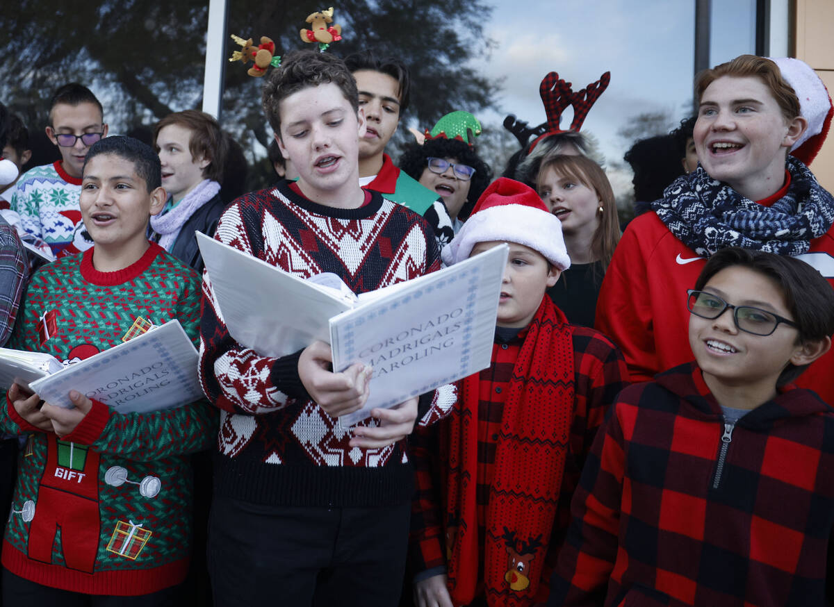 Choirs from Gunderson Middle School and Coronado High School sing during the annual lighting ceremony at the Ethel M Chocolates’ Cactus Garden, Friday, Nov. 4, 2022, in Henderson. (Chitose Suzuki/Las Vegas Review-Journal) @chitosephoto
