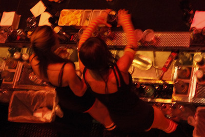 Locals with Nevada identification get in for free while women who wear a Sunday school outfit drink free champagne all night. Resident DJ Five spins a mix of house and pop music; sometimes a celebrity hosts, McCormack says. The club also offers bottle specials such as two-for-one or half price bottles.