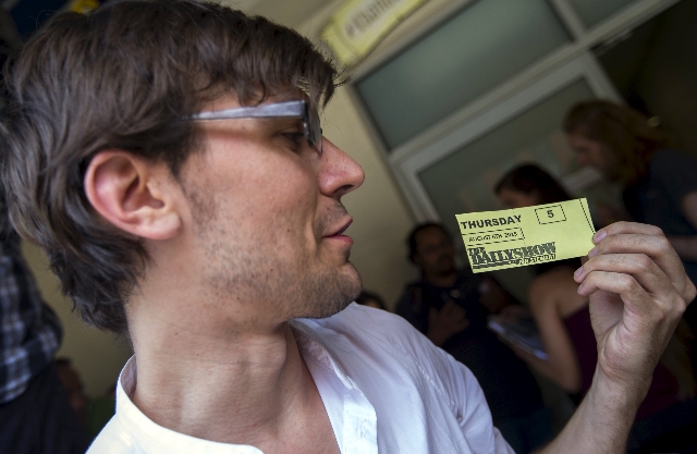 LOS ANGELES — The host of "The Daily Show with Jon Stewart" used his last turn behind the desk to make the program a daily show about all the people who put the program together.