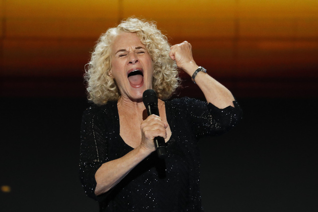 The legendary Carole King got delegates on their feet, swaying and singing along to her classic “You’ve Got a Friend” as they held hands.