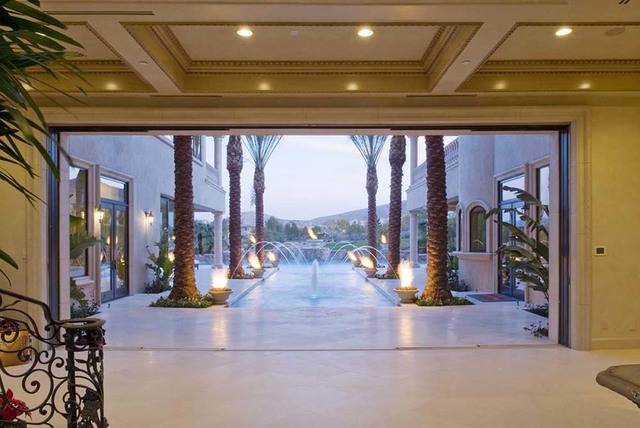 It comes with everything you’d expect. An alarm sytem, home gym, furniture, stone columns, marble, sprinklers, golf course frontage, heated pool, spa, and an HOA payment of $520, which is also about the same amount of money many Las Vegans spend on rent every month.