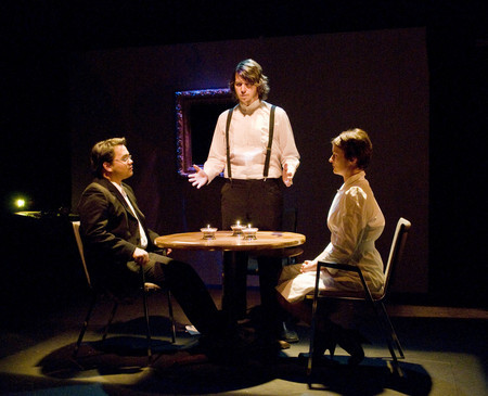 Addressing one of Mamet's favored themes -- tricks and cons (as in his films, "House of Games," "The Spanish Prisoner," "Heist" and "Wag the Dog") -- "The Shawl" is a three-character piece. John, a charlatan clairvoyant to all outward appearances, accepts as a client a woman known simply as "Miss A," seeking advice on whether she should contest her recently deceased mother's will. In what amounts to a magician spilling his secrets, John tells his greedy gay lover, Charles, how to gain Miss A's trust and learn her background. But when Charles insists John arrange a bogus seance with this mark to wheedle her out of the inheritance money, questions arise as to whether John's merely a two-bit grifter or a gifted visionary.