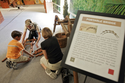 The exhibit includes viewing galleries devoted to transportation, military and mechanical devices. Included among the displays are replicas of da Vinci's prototypes for the first bicycle, the first car, the first helicopter and the first parachute.