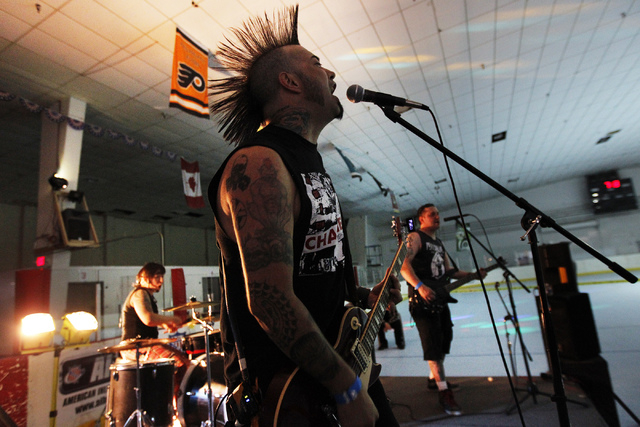 Back at the Las Vegas Event Arena, coed punk outfit Sounds of Threat is playing. A younger band, it performs as if under attack, returning fire with fast, fierce songs that detonate like a string of fireworks exploding one right after the next.