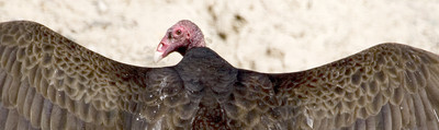 A walking tour of the exhibit is a vicarious jaunt through jagged, sunlight-bright cliffs, massive, sunset-colored rock walls and seemingly bottomless canyons in such areas as Muddy Mountains, strewn with mountain lions and yearlings; Rainbow Mountain, dotted with roaming bighorn sheep; Wee Thump Wilderness, populated by great horned owls; and Black Canyon Wilderness, home to a species that sounds simultaneously mild and menacing -- the turkey vulture.