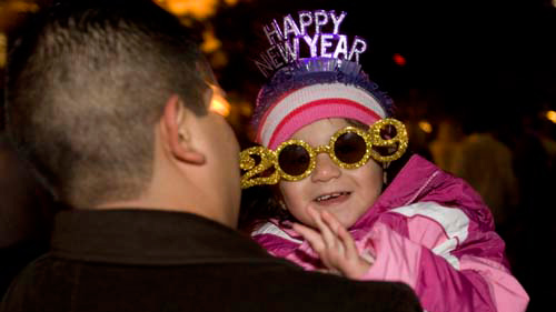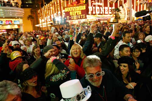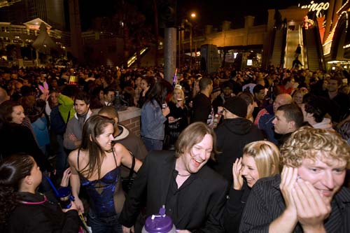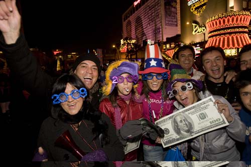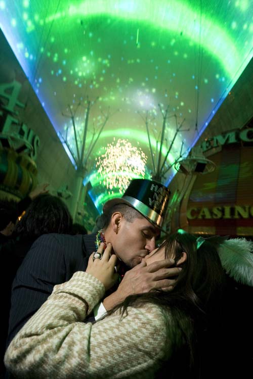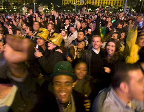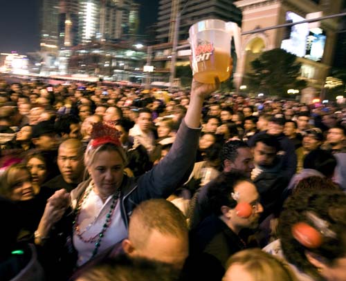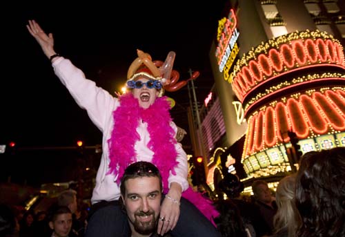 Las Vegas' 2008 New Year's Eve celebrations on the Strip and downtown in the Fremont Street Experience.