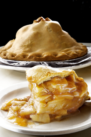With tender green apples in a sweet golden crust, it’s baked fresh daily, $4 a slice, $12.75 for a whole pie.