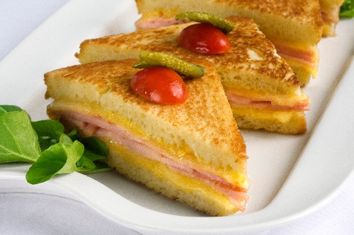 This classic with a French flavor contains Jambon de Paris with Dijon mustard and Gruyere on sliced brioche toasted in butter, $9 in the lounge.