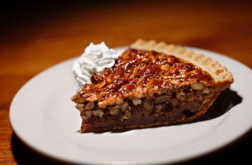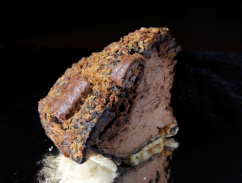 A thin pastry crust is lined with a layer of peanut butter and filled with chocolate Bavarian cream, topped with chocolate and chunks of Hershey's 5th Avenue bars, $8.49.
