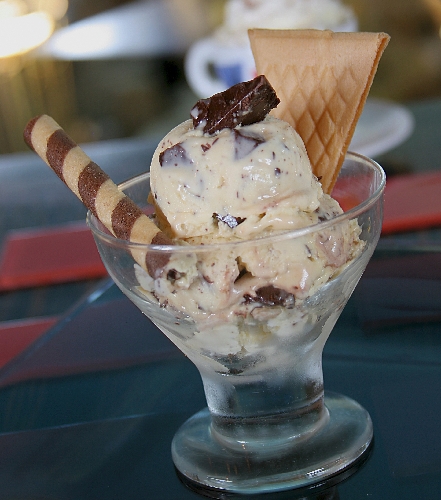 Cool and creamy vanilla gelato is strewn with chocolate chunks, $4.50 per scoop.