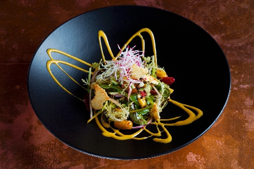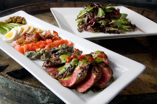 This deconstructed salad is made with Kobe flatiron steak, egg, tomato, cabrales cheese, pancetta, pumpkin seeds, avocado, organic greens and a citrus dressing, $15.