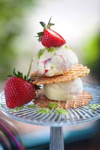 Almond macaroons bracket strawberry cheesecake ice cream, $4.50.