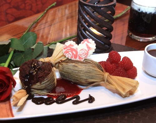 Rich chocolate and corn masa with raspberry ganache filling, served warm with raspberry coulis, $8, available beginning Tuesday.