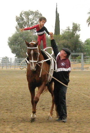 Vaulting shares some similarities with gymnastics; athletes perform handstands, cartwheels, flips. The difference is that it's done on a moving horse. Participants can be as young as 7. They start with basic moves and learn to perform more elaborate moves with practice.