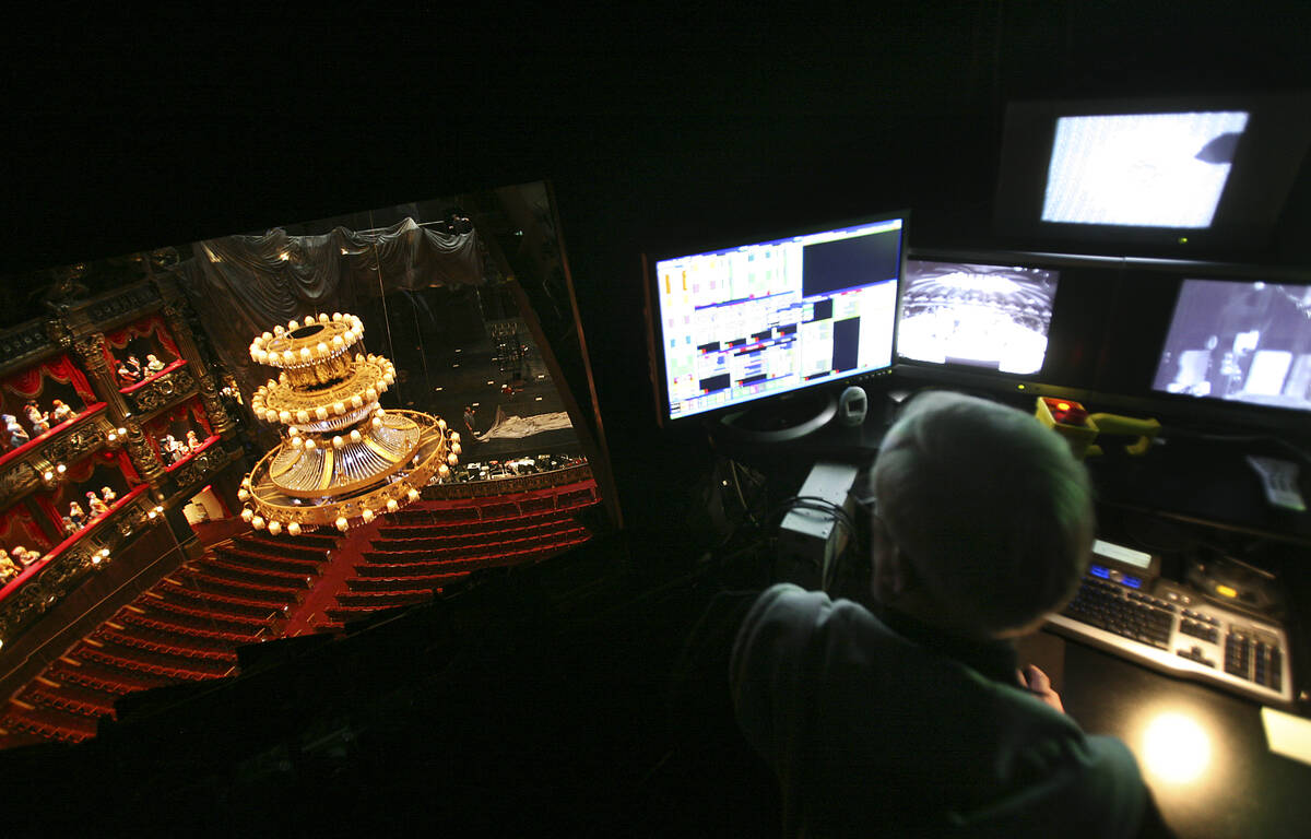 Head of automation William Stephenson controls the chandelier in the Phantom Theater at the Venetian in Las Vegas on Dec. 29, 2010.