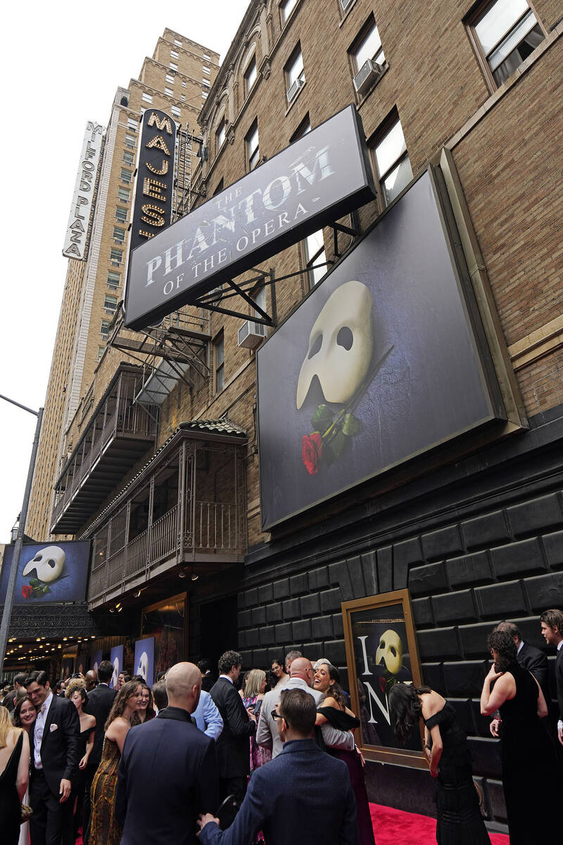 Theatergoers attend "The Phantom of the Opera," final Broadway performance at the Majestic Theatre on Sunday, April 16, 2023, in New York. (Photo by Charles Sykes/Invision/AP)