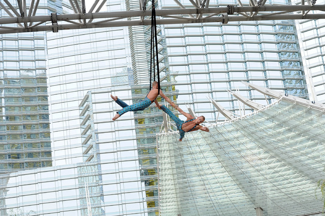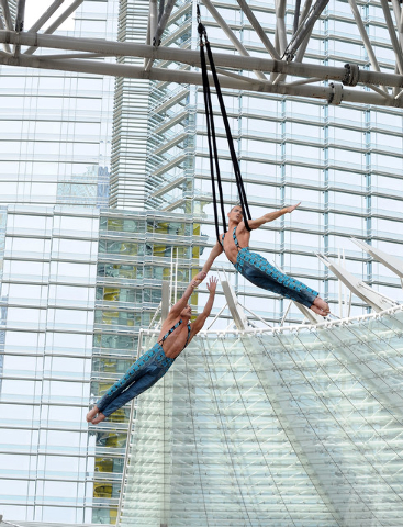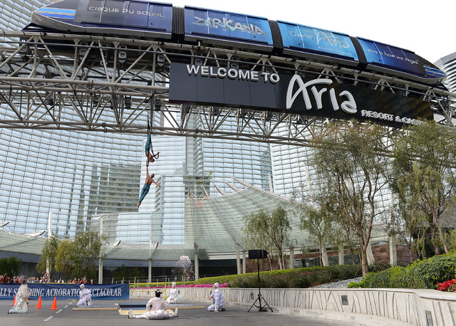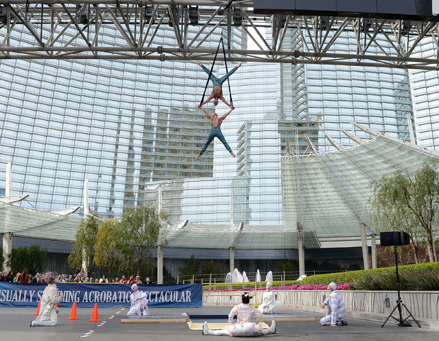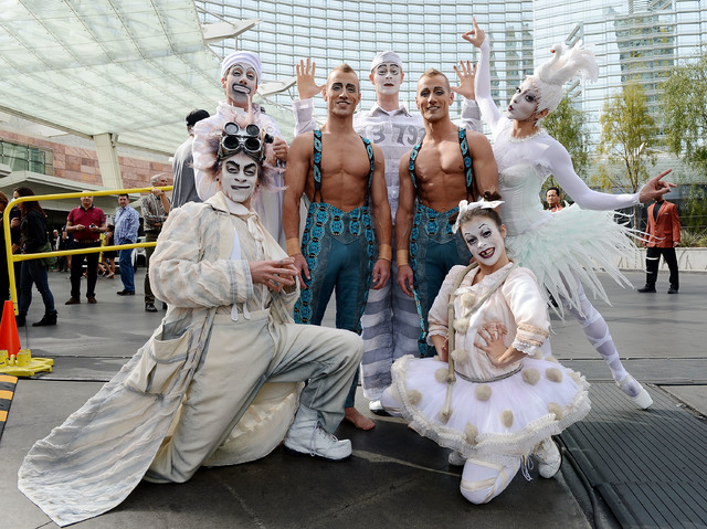 The latest: “Zarkana” performers from Aria’s Cirque du Soleil show did this on Monday. Photographer Denise Truscello/WireImage was there.