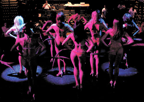 Probably a coincidence, but the band rehearsing onstage does play the Rat Pack anthem "Ain't That a Kick in the Head" just as David Saxe escorts visitors across the stage to take a mindful seat in the audience.