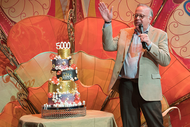 The music engineered by my friend Giles Martin, son of the late Sir George Martin who recorded all The Beatles albums, is piped to the audience through 6,351 speakers in the 2,013-seat theater. Cirque senior exec Jerry Nadal, in the second and third photos, celebrated the milestone with the cast.