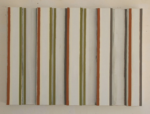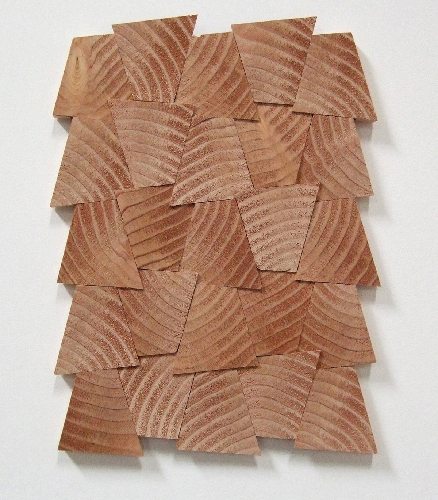 Recessive rather than aggressive, "Reduced" does not leap out and grab viewers by the eyeballs. Pieces may appear little more than colored strips and simple backgrounds in Habegger's oil and polymer emulsion paintings, with bold, straightforward lines and clear compositions. Wonderly's grid and cubed patterns are neat geographic shapes, finely etched into simple materials such as graphite, redwood, laminate and OSB (Oriented Strand Boards).