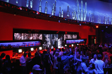 The main room of ROK Vegas is ovalish, adorned in large swaths of red, blue and black, and without the alcoves and side spaces that other clubs use in an attempt to fend off claustrophobia. It is, Boyer says, a layout designed to allow patrons to see one another and create "kind of one huge party room where everybody's involved. Everybody feeds off the energy."
