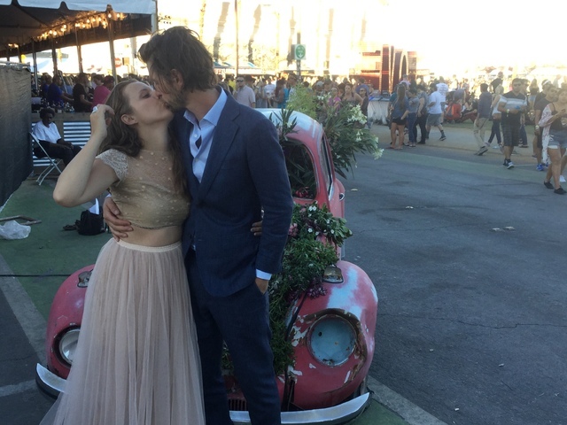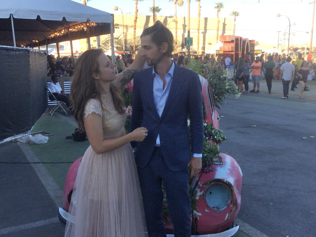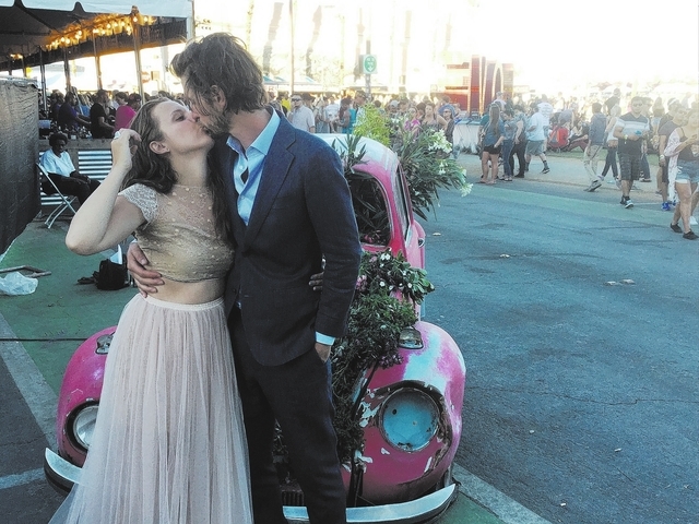 There was no wedding chapel, no aisle and no wedding bells. Andrea Kilness and Kristopher Lovett married Sunday in front of a car, to the sound of a cheering crowd at Life Is Beautiful in downtown Las Vegas.