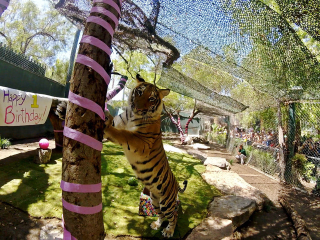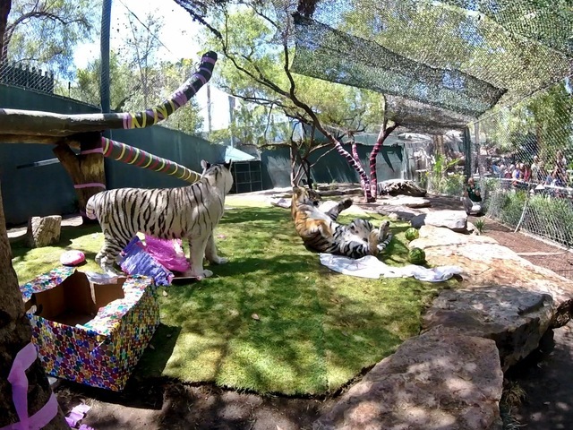 Tiger cubs Hirah and Maharani had quite the party as they celebrated their birthday Friday at Siegfried and Roy’s Secret Garden.