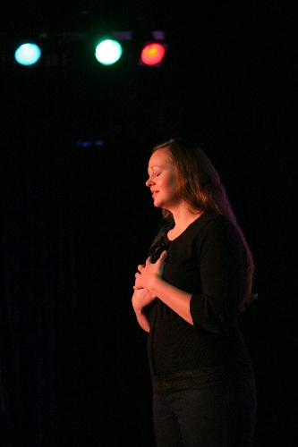 Taking the stage, actress Karen Y. Lu launches into "Darfur Monologue," a harrowing recounting of her gang rape to her newborn son. "Your father, all six of him, dragged me through the dust, my head bobbing over the stones," she says with a hushed, agonized power in her voice. "Your father, all six of him, threw me facedown in the dirt. As I choked sand, your father, all six of him, cut my clothes off with a knife. One by one, all six of him entered me."