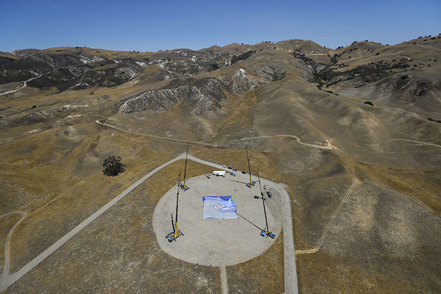 After a two-minute freefall, Luke Aikins flipped onto his back at the last second and landed dead center into a 100-by-100-foot net at the Big Sky movie ranch on the outskirts of Simi Valley in California. Cheers rose from those who gathered to watch the stunt, including his family.