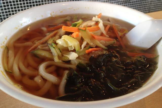 There are also vegetable, chicken and tempura udon soup. The vegetable udon ($5.95) is mixed with carrots, mushrooms and soft noodles.