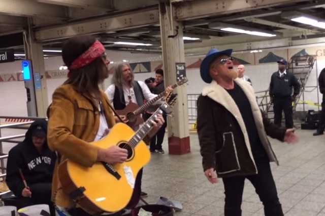 The New York Post reported that band wore disguises to the subway gig, but ditched them before performing “Angel of Harlem.”
