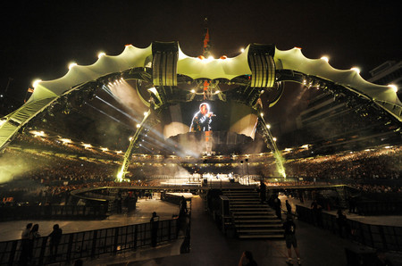 "It's a monster," says Daren Libonati, executive director of Sam Boyd Stadium as well as the Thomas & Mack Center and Cox Pavilion. "This is by far the biggest show we've ever done at the stadium and at the Thomas & Mack Center combined for a one-night concert. Just the cylindrical video system is unbelievable. It spins and comes apart. You're in this huge space, in a stadium, but the 360-degree stage and the claw is so mesmerizing, it sucks you in."