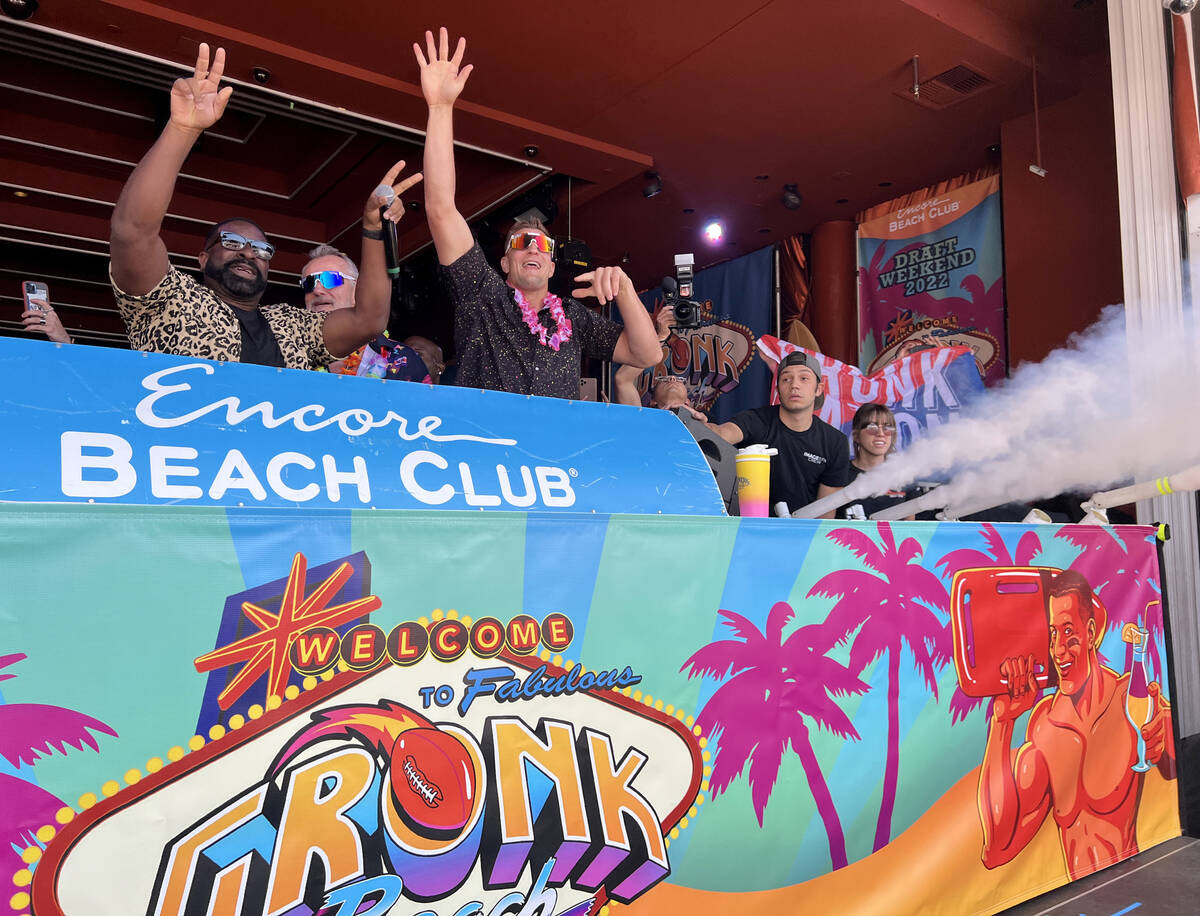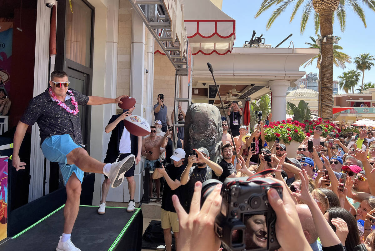 The party runs April 17 to 20 at WWE’s host hotel. Gronk is a veteran of the beach-club scene, having hosted at Encore Beach Club at Wynn during F1, Super Bowl and NFL draft weekends. He’s easy to find, wearing his wrap-around shades, tank top and spraying the thonged throng with champagne.