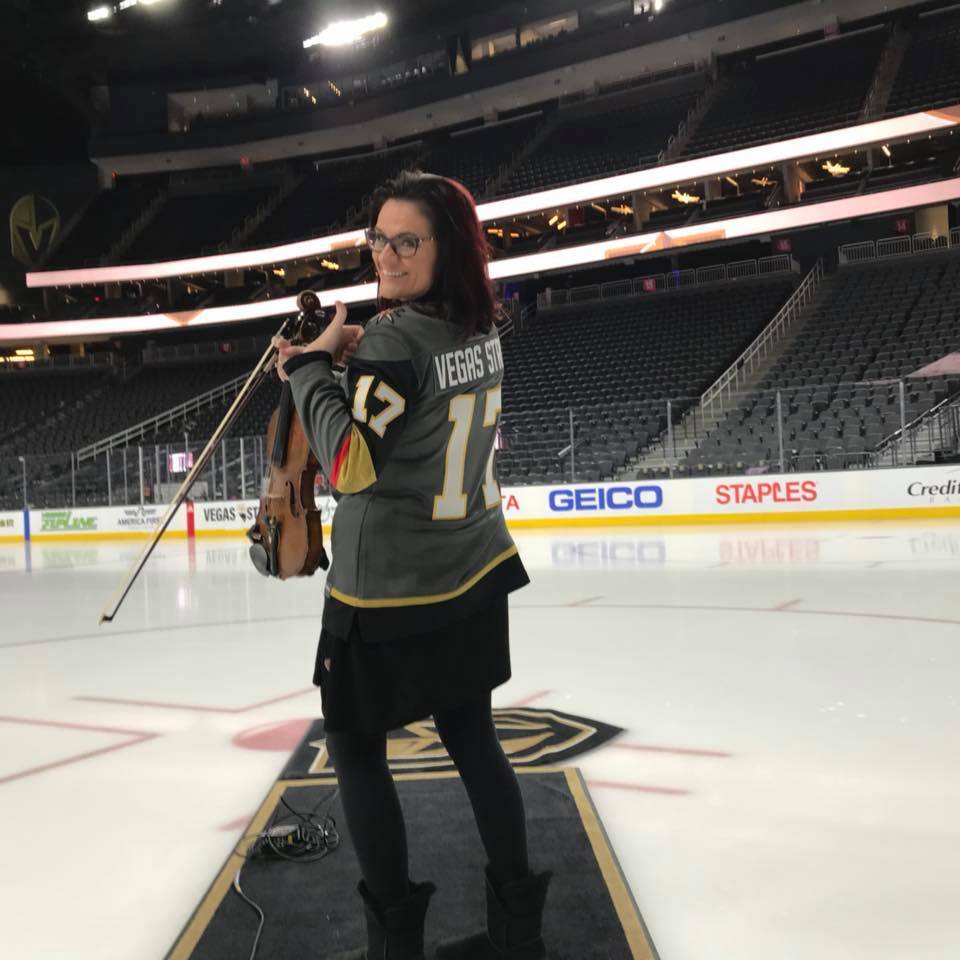 The foe this evening is the Los Angeles Kings, regional rival, and once more thousands of fans of the visiting team have descended on the Golden Knights’ home ice. Earlier, before the crowd filed in, Las Vegas Philharmonic first-chair violinist De Ann Letourneu performed the national anthem (ours) to an audience of ushers, a handful of journalist and a Zamboni driver.