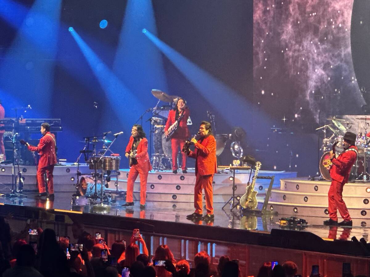 The buzz after Los Bukis’ performances in May was the band is a force in live performance, energized and reunited for the Las Vegas run. They are sonic, tight, a delight to watch in their matching suits (cherry-red on the night I attended, in turquoise when they opened). The guys move in tandem, seamlessly and naturally, as if they grew up grooving together.