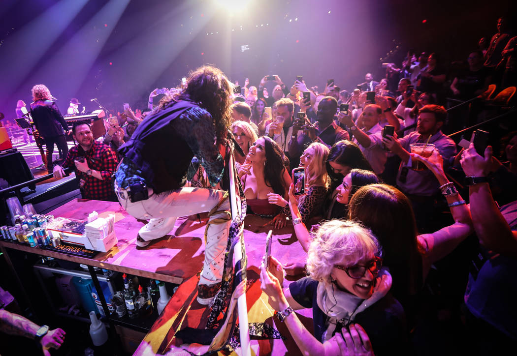 It’s not all females, of course. We have gentlemen of certain achievement here. Nevada Gov. Steve Sisolak — who at age 65 is six years younger than Tyler — is in the mix somewhere, along with his wife, Kathy Ong. Saturday, Massachusetts Gov. Charlie Baker was in the house, and he’s a bonafide, lifelong Aerosmith fan.